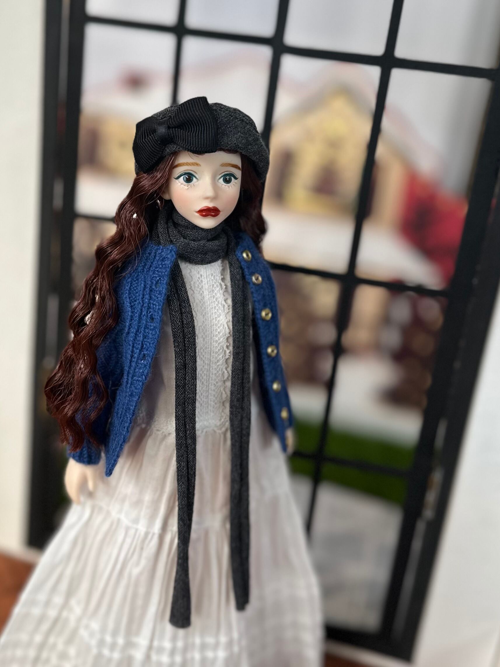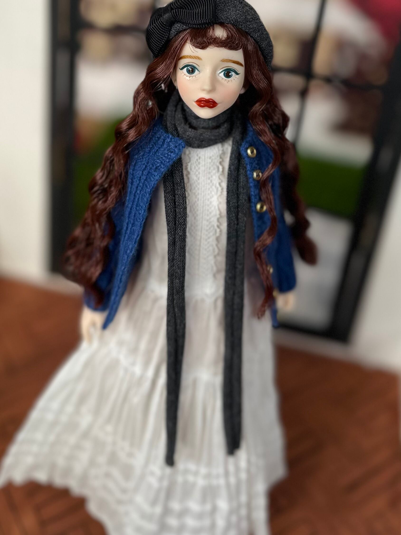 写真のグレーのベレー帽と同じ、やわらかなウール素材のロングマフラーです。